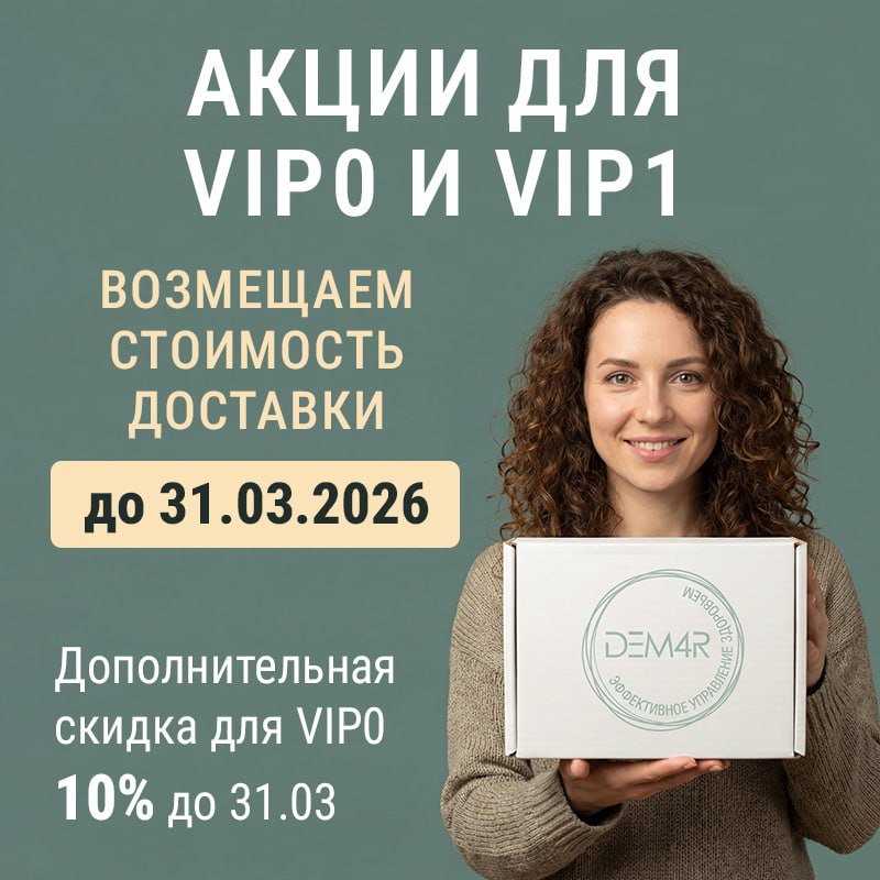 Если вы еще не являетесь нашим покупателем, предлагаем пройти регистрацию на сайте dem4r.com. После регистрации вы сразу получите статус ВИП0 с дополнительной скидкой 10%! А с нашей акцией до 31 марта вы сможете не только оформить заказ, но и получить стопроцентную компенсацию стоимости его доставки до пункта выдачи СДЭК.