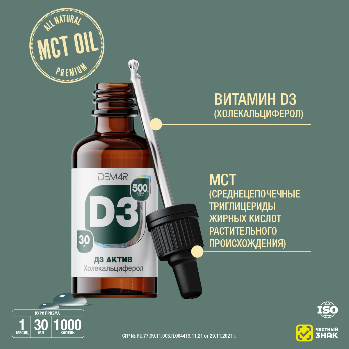 Состав: среднецепочечные триглицериды жирных кислот (МСТ) растительного происхождения, витамин D3 (холекальциферол).