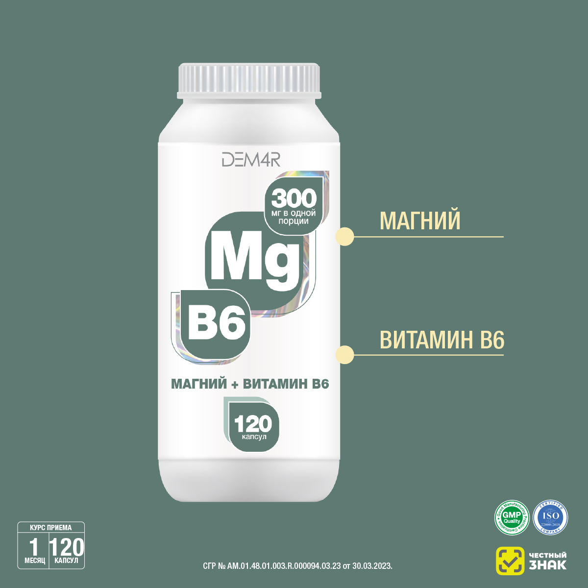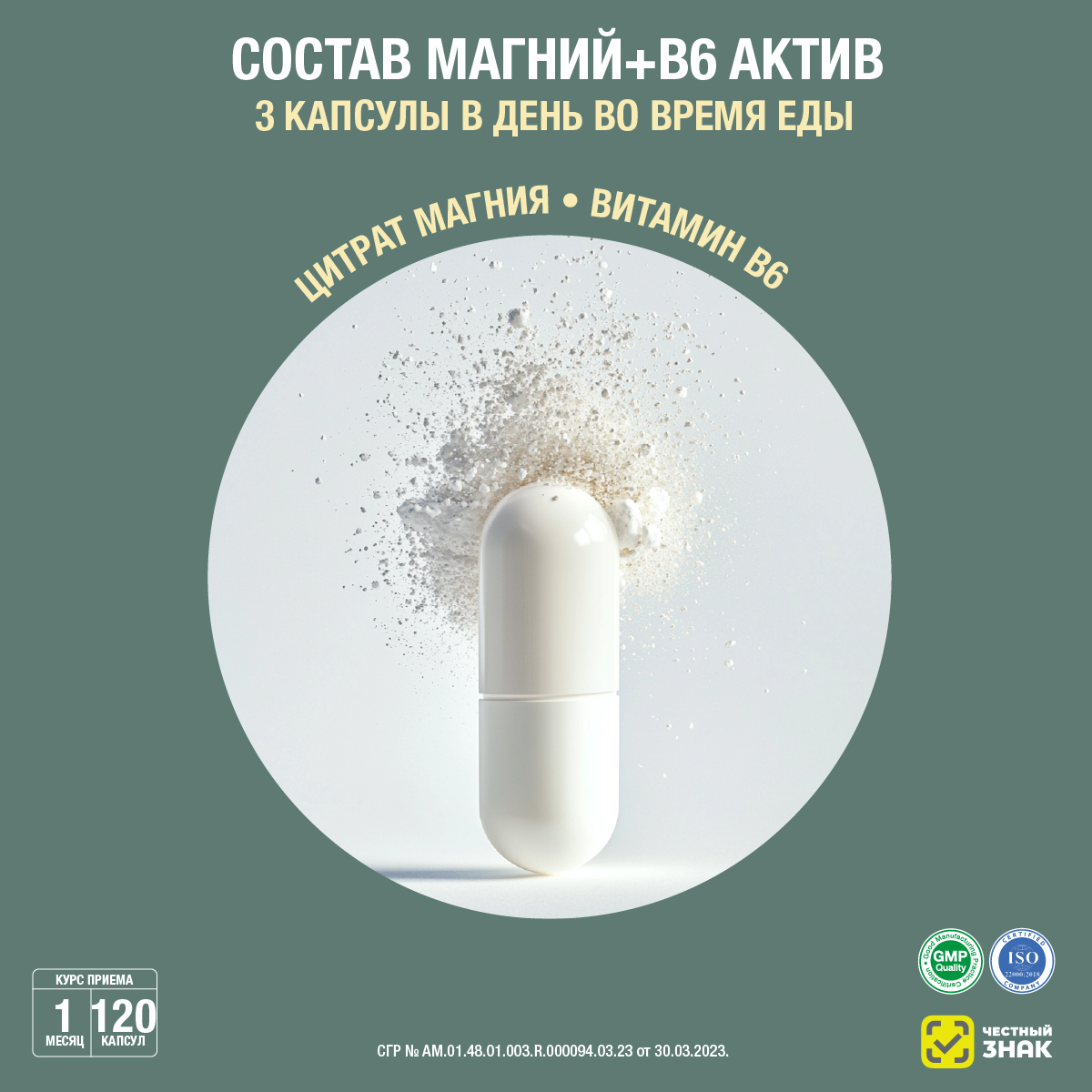 Состав: цитрат магния, тальк пищевой (антислеживающий агент), желатин (оболочка капсулы), микрокристаллическая целлюлоза (носитель), витамин В6 (пиридоксина гидрохлорид).