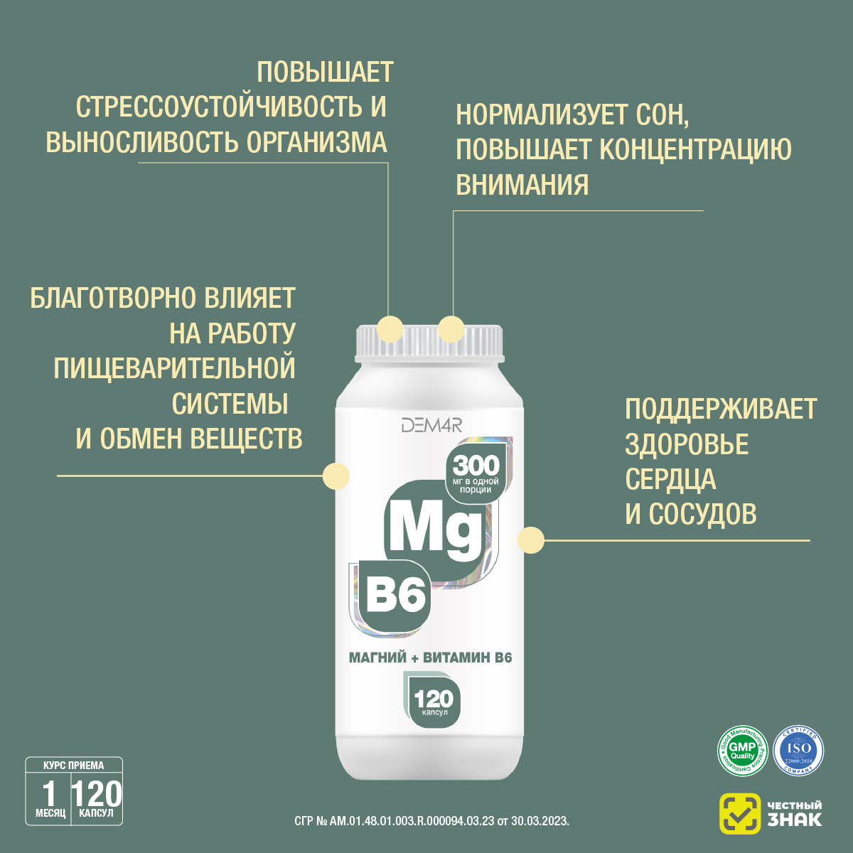 Витамин В6 повышает биодоступность магния для организма, а магний увеличивает способность В6 проникать внутрь клетки.