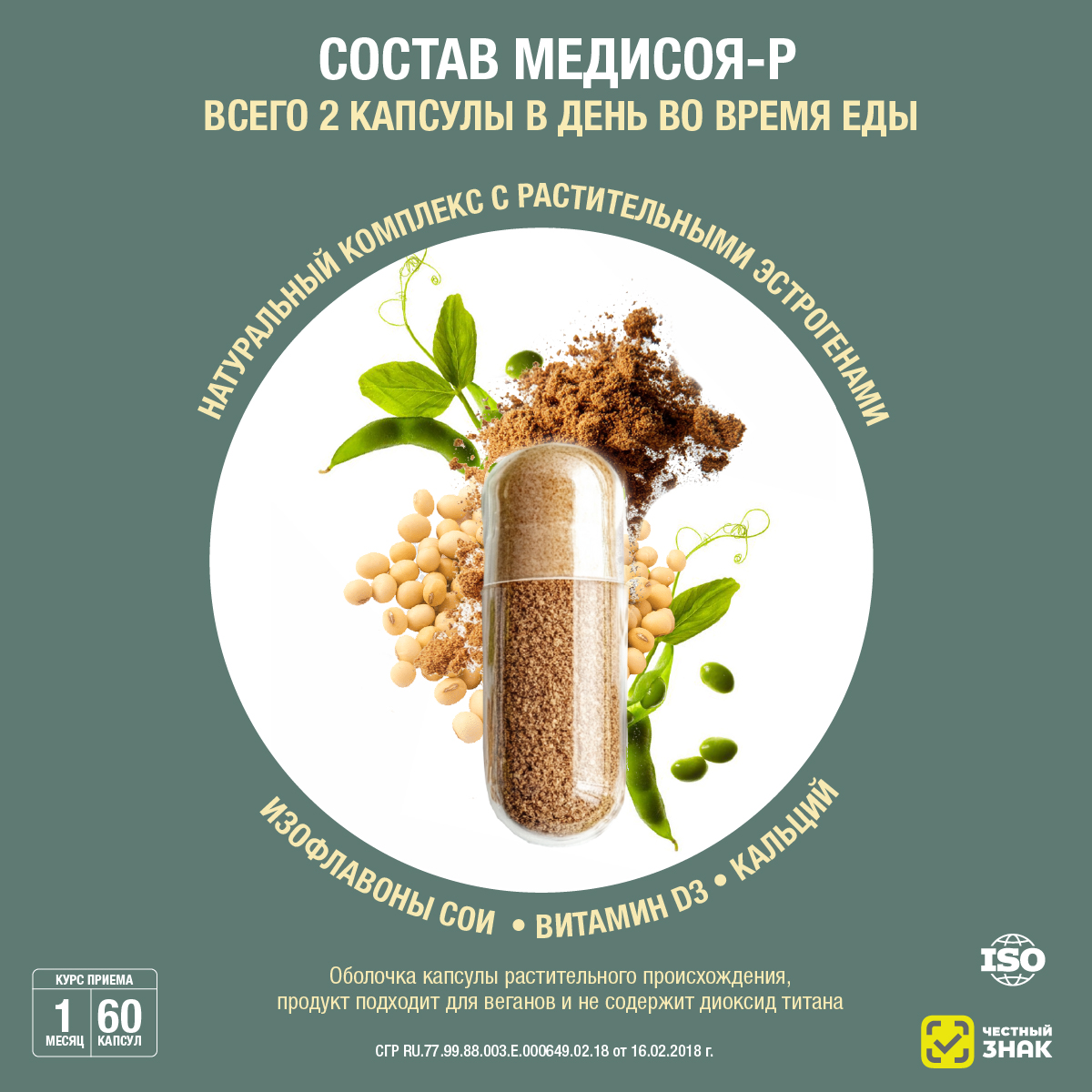 Достоинства: Медисоя-Р это в основном женский продукт и он отвечает за эстрогеновый профиль женщины - а это привлекательность, соблазнительность, женская харизма, кроме этого благодаря эстрогену у женщины лучше работает ссс, и нет остеопороза.
