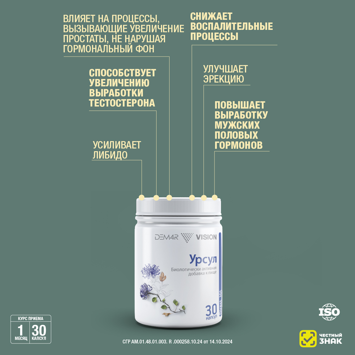 Достоинства: Продукт Урсул сильный мужской комплекс, решает большинство мужских проблем и с предстательной железой и суставы и мочеполовой системы и простудные проблемы в общем нужен всегда и везде.