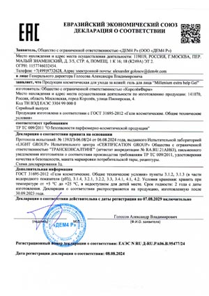 Гель для лица “Millenium extra help gel”