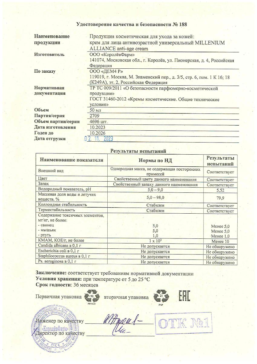 Удостоверение качества и безопасности N 188