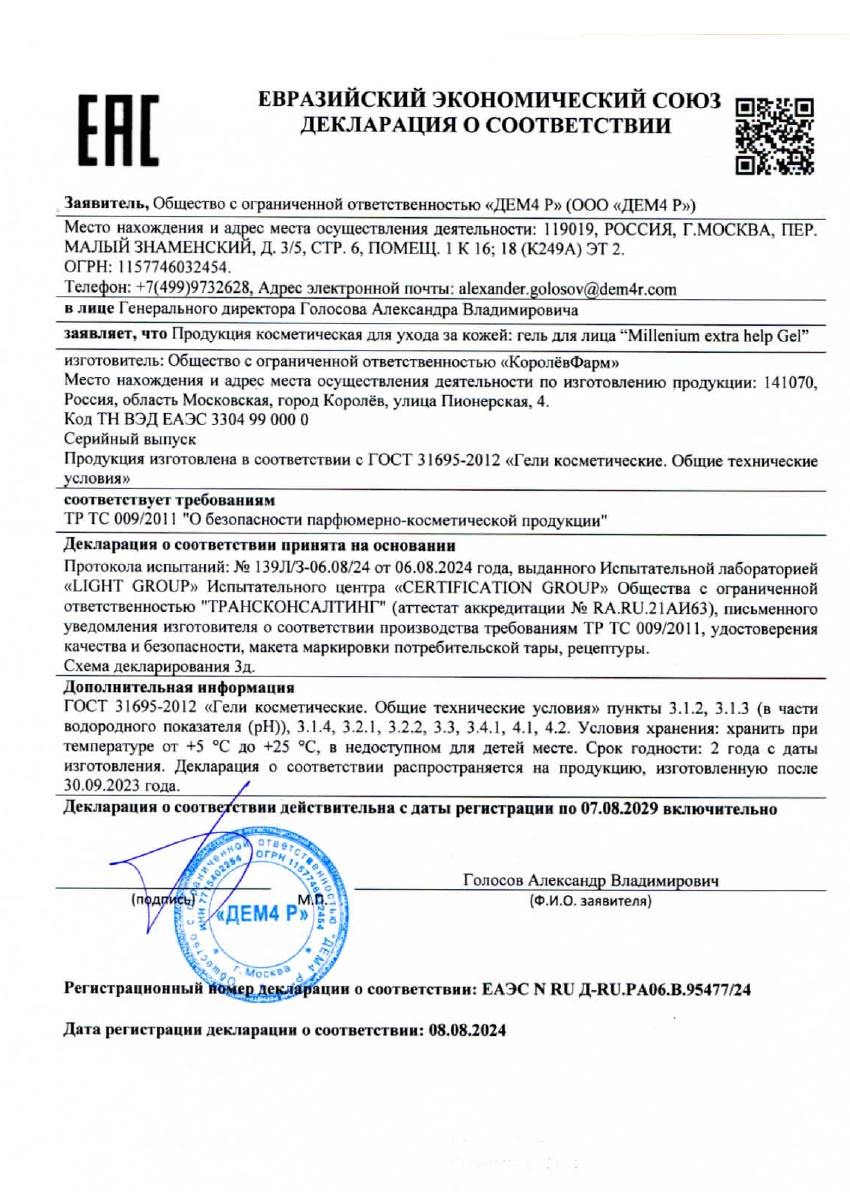 Свидетельство о государственной регистрации № AM.01.11.01.003.R.000295.04.24 от 23.04.2024.
